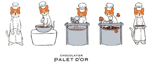 猫のショコラティエ《パレ》が、カカオ豆の選別からチョコレート作りをする様子をデザインしたオリジナルショコラは、2026年2月22日の「猫の日」に合わせて販売を開始。
