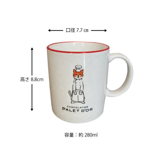 マグカップは、前面に猫ショコラティエ《パレ》、背面に《ドール》がデザインされています。紅茶缶やBean to cocoaをセットにすれば、ギフトにもぴったりです。