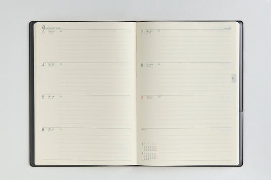 使いやすい「月間ブロック式+週間セパレート式」。1日の記入欄が広いので、たっぷり書きたい方にオススメです。ビジネスシーンだけでなく、日々のライフログにもぴったり。