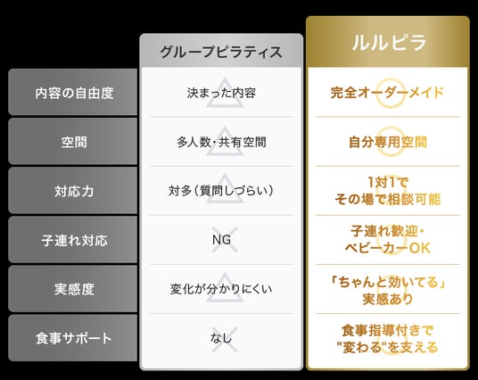 ルルピラの特徴(大手グループピラティスとの比較)