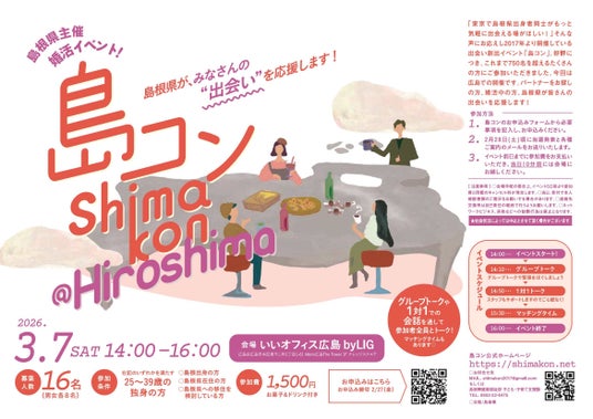 「都市部でも島根県出身者同士がもっと気軽に出会える場がほしい!」そんな声にお応えし2017年より開催している出会い創出イベント「島コン」。
