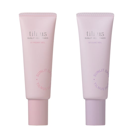 今回登場するのは、毎日のメイクがより楽しくなるような“ちゅるツヤ肌”に仕上げてくれる化粧下地「サンリットヴェール プライマー」。スキンケア感覚で使えるみずみずしいテクスチャーが特徴で、きしみ感なく肌にすっとなじみ、光のヴェールをまとったような内側から輝くきれいなツヤ感を長時間キープ(※1)してくれます。カラーはなりたい肌印象にあわせて選べる2色展開。「01 ピオニーヴェール」はミルキーなピンクカラーが肌に血色感(※2)を、「02 ライラックヴェール」はやわらかいパープルカラーが肌に透明感(※2)をプラス。どちらのカラーも白浮きせず、肌を自然に明るく澄んだ印象に整えてくれます。また吸収剤不使用のノンケミカル処方&せっけんでオフしやすい処方も魅力。テクニック入らずで誰でも簡単にツヤ肌に仕上がる「tilnus」の新作プライマーで、多幸感あふれる“ちゅるツヤ肌”メイクをぜひ楽しんでください。