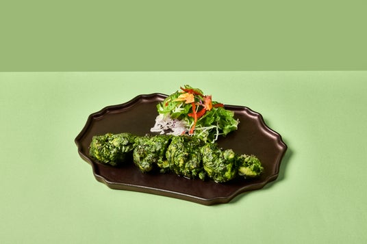 アヒリヤチキンにガーリック、ほうれん草、ミント、スパイスを合わせた特製ソースをたっぷり絡め、仕上げにバターを軽く塗って風味豊かに焼き上げたタンドール料理。スパイスの香りと素材の旨みが引き立つ一品です。辛くないのでどなたでも食べやすく、お酒のお供にも。