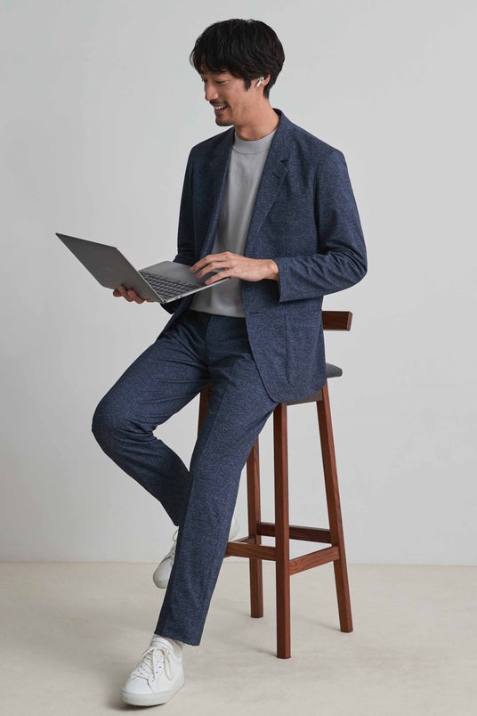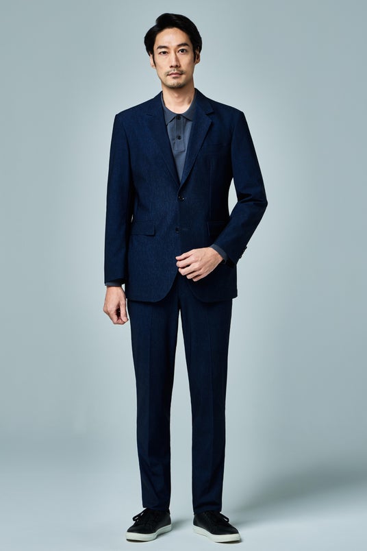 デニム調生地ならではのカジュアルさと、スーツ専門店ならではの縫製によるきちんとした見た目を兼ね備えております。合わせるアイテムにより、オン・オフ問わず幅広いシーンで着用いただけます。
