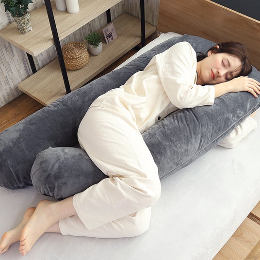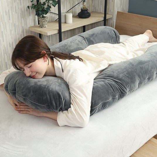 HUGNOAは、左右の大きなクッションが全身を優しくホールドするU字型の設計が特徴です。仰向け寝、横向き寝、うつぶせ寝など、あらゆる就寝姿勢に対応でき、どのような寝姿勢であっても極上の癒やしを提供します。