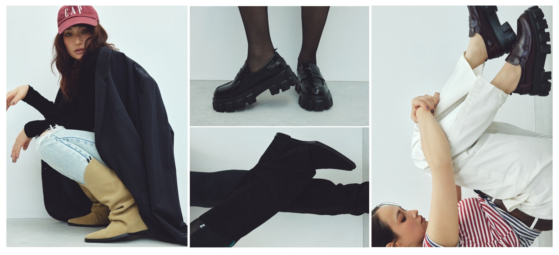 佐田氏はMANA展示会にてMANAのブーツシリーズに一目惚れし、今回のコラボレーションの2型が誕生しました。1型はシルエットが美しく思わず触れたくなる「スエードウエスタンブーツ」。 遊び心溢れる裏革のミントグリーンのバイカラーの配色がキャッチーなブーツ。サイドにはプレッピームードが漂うカラーテープを施したデザインとなっています。履くだけで一気に足元にボリュームが出る存在感は、コーディネートに一点投入で気分が上がるアイテムです。カジュアルな雰囲気でデニムとの相性も抜群。8cmのインヒールで佐田氏らしいプレッピー×キレイめのスタイリングに合うバランスを意識しました。