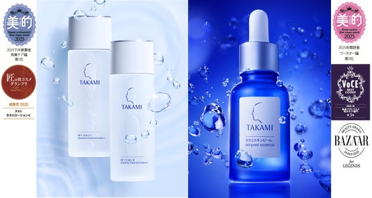 東京・表参道にある美容皮膚の現場で、20万人*²以上の肌と向き合ってきた経験から誕生したスキンケアブランド「タカミ」(本社:東京都新宿区、 www.takami-labo.com) の、「タカミローションI・II」が発売からわずか約2か月でシリーズ累計べスコス9冠*³を受賞しました。また、ロングセラーアイテムの「タカミスキンピール」は、累計受賞数106冠受賞*¹ 、さらに累計出荷数1850万本*⁴を突破しました。
