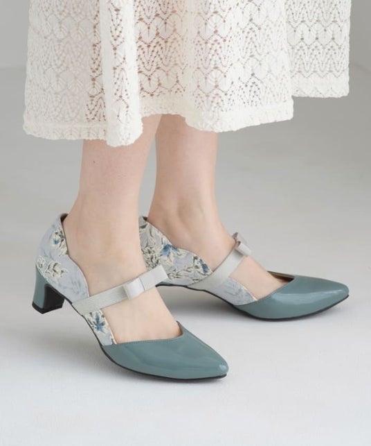 リボンゴムストラップフラワーカットパンプス ¥8,690(税込)