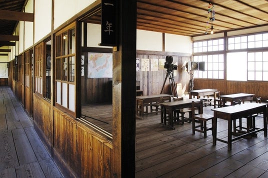┗名作映画のロケセットが残り、昭和の教室や路地をゆったり散策できます。醤油ソフトなどのスイーツやミュージアムも充実。