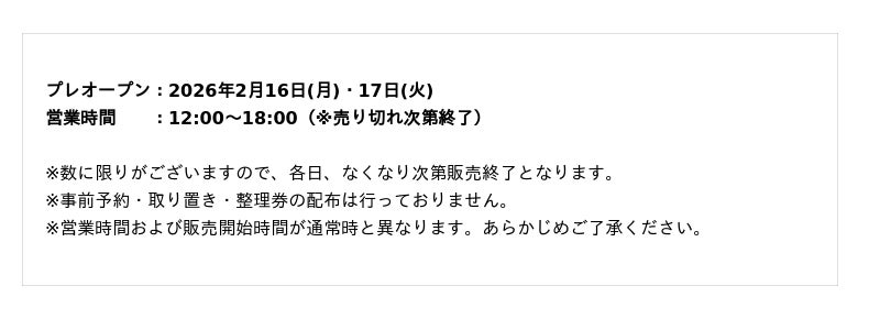 ~グランドオープンに先駆け、2日間のプレオープンを実施!期間限定・お得なセット販売も決定~