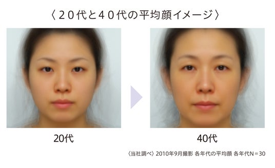 また、20代、40代の平均顔を比較すると、肌全体が暗くくすんだ印象に見えます。