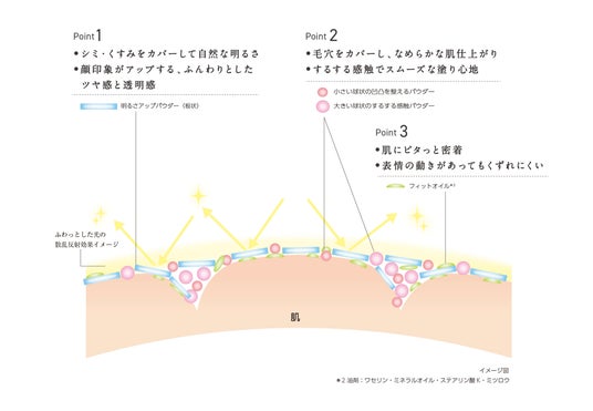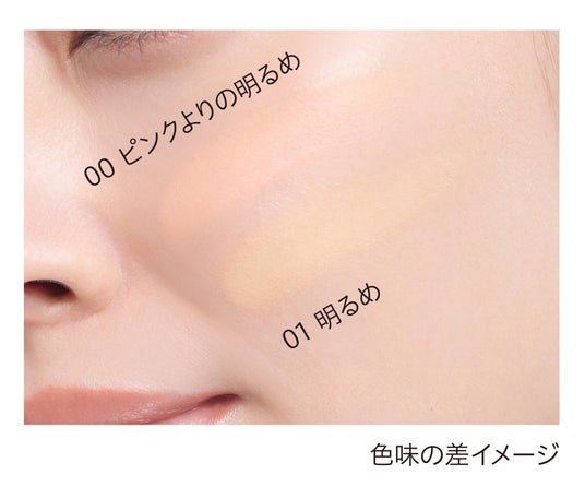 「00 ピンクよりの明るめ」には、透明感をアップさせるために既存色01~03にも配合しているブルーパールに加え、ピンクパールを新配合。微細なピンクパールで、肌にほんのりピンクを“しのばせる”ことで血色感がアップ。黄ぐすみがカバーされた、明るい元気な肌印象になります。
