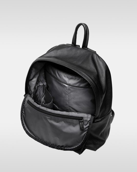 背面構造から芯材を極力排除し、背負い心地もソフトに。ショルダー部分には十分なクッション材を搭載し、移動時の肩への負担を軽減します。カジュアルな装いにもレザーの質感が自然に馴染み、スタイリングに落ち着いた印象を添えてくれます。