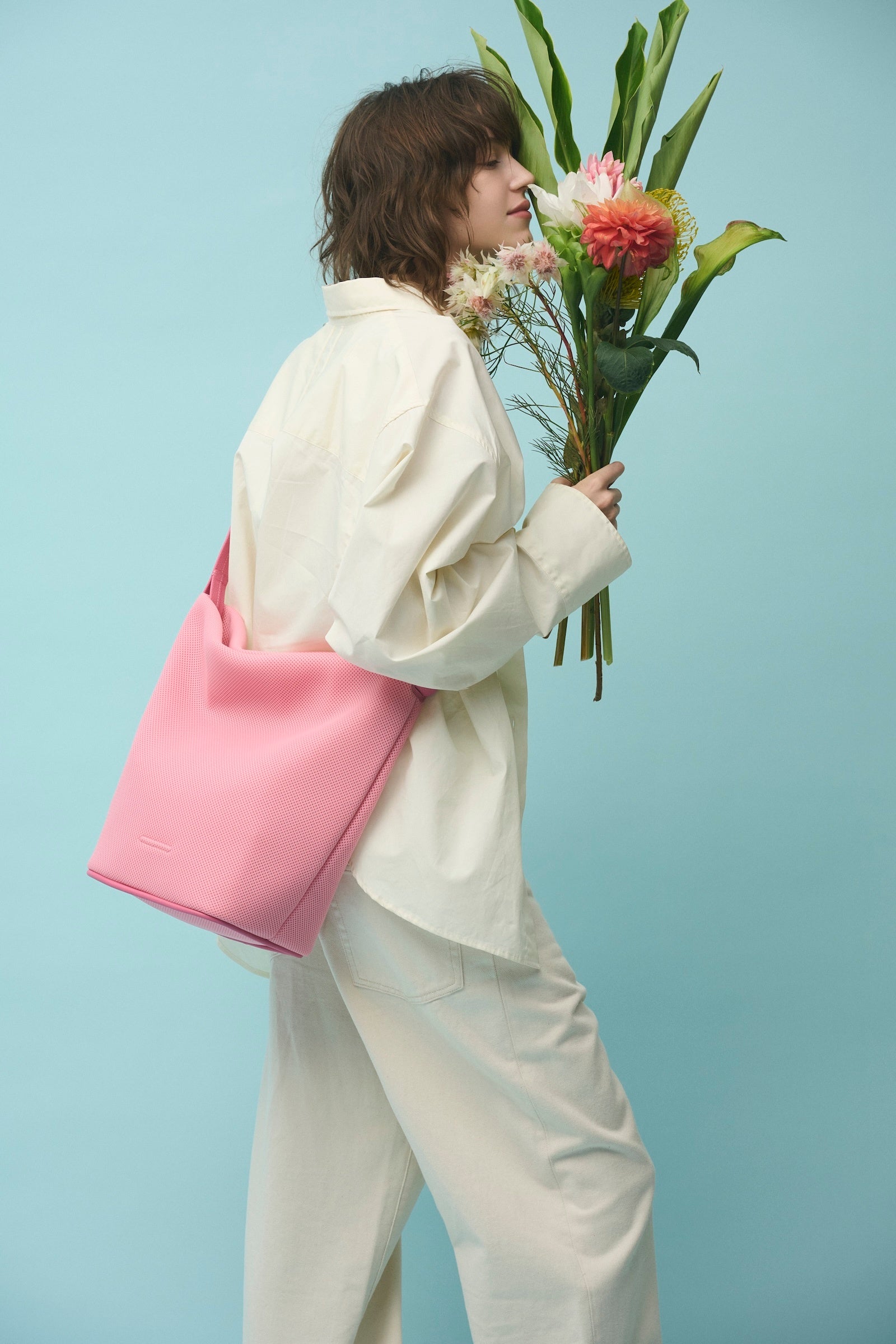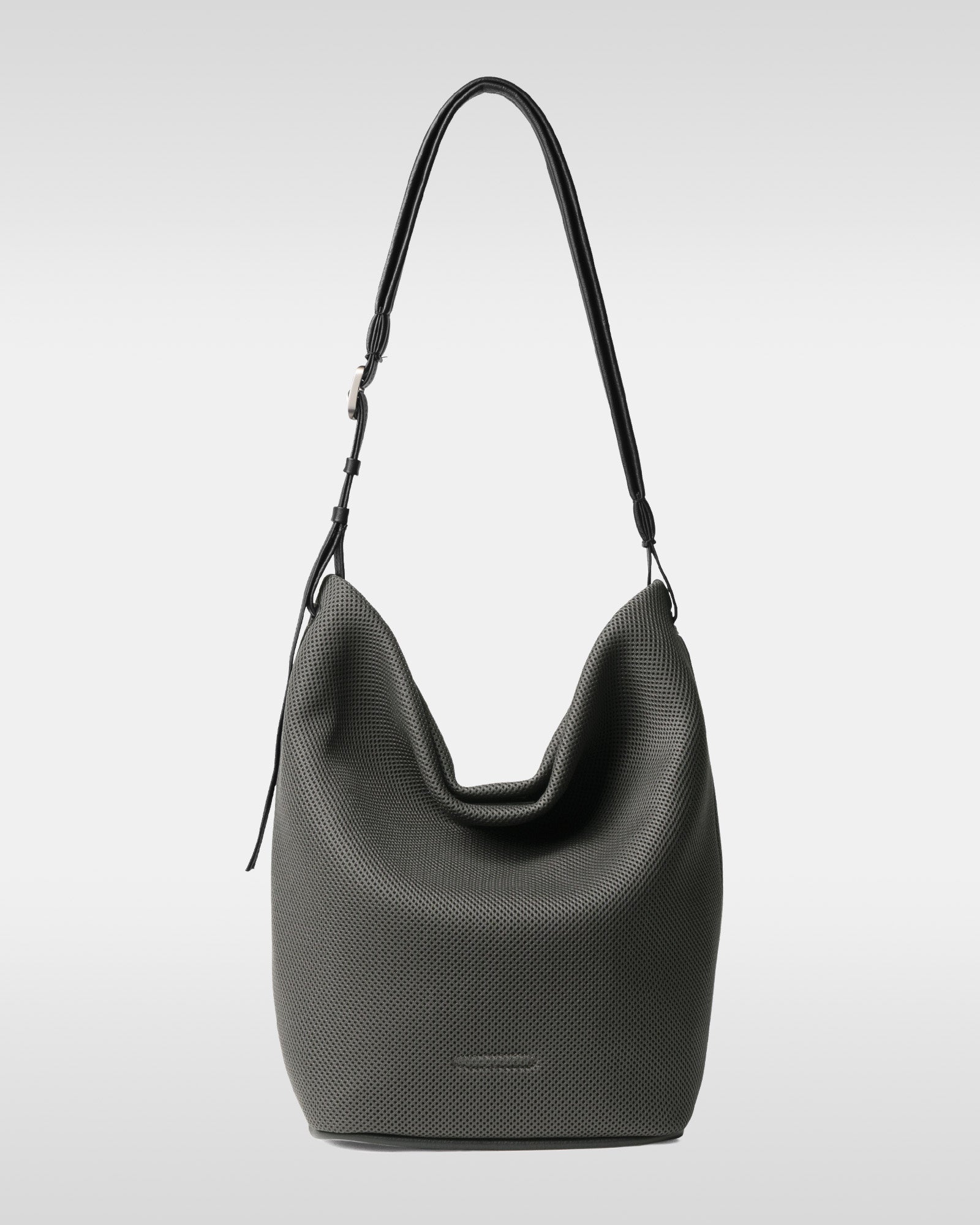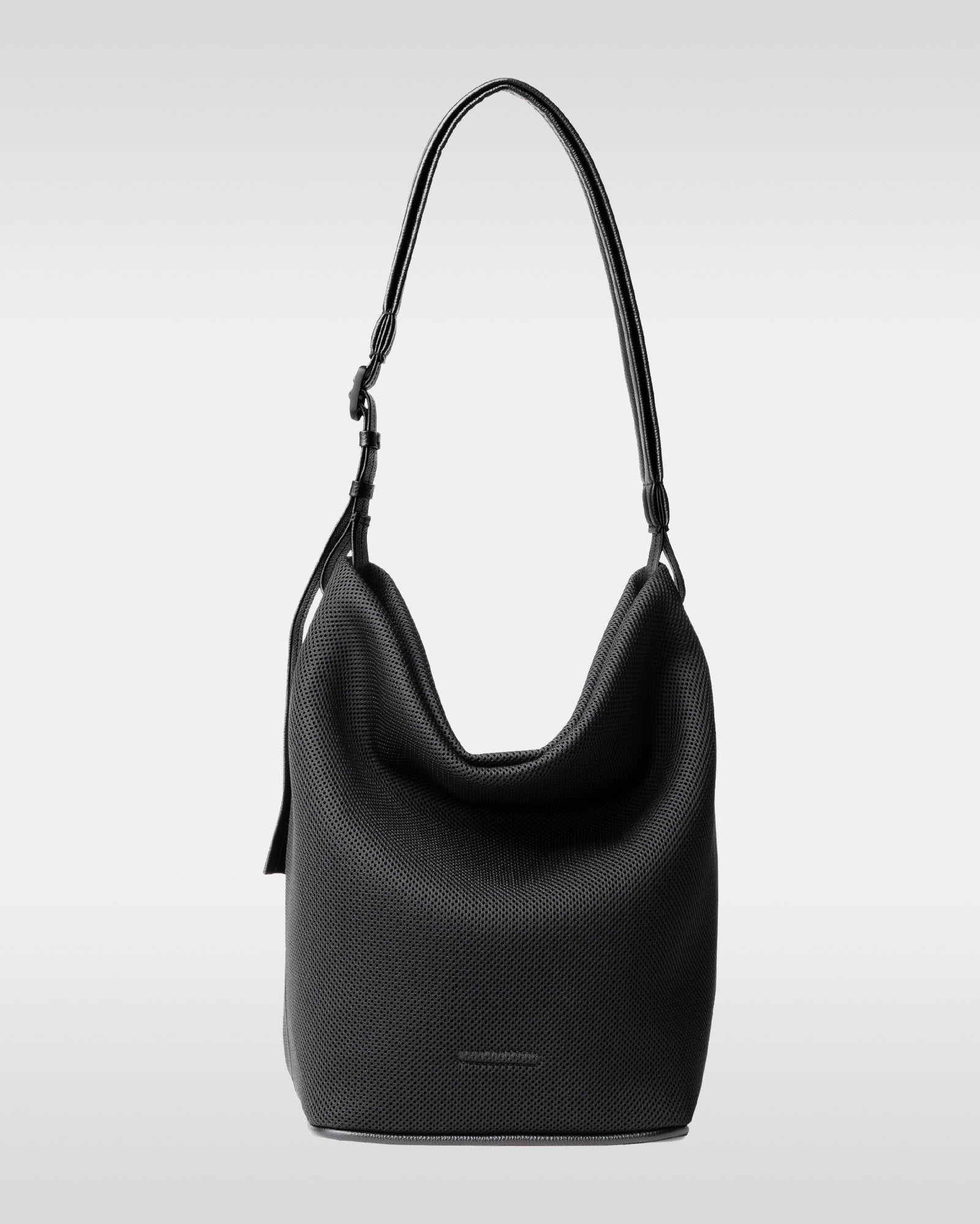 3層構造のダブルラッセルメッシュをメイン素材に採用した「メッシュトート・ホーボー」は、メッシュトートで約280gという驚くほどの軽さと優れた通気性が特徴のシリーズです。ストラップ部分にレザーを配することで、スポーティーさのあるメッシュの印象を程よく引き締め、大人のスタイルにも馴染むデザインに仕上げました。