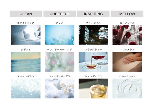 12種のマインドセンスから好きな香りを組み合わせれば、気分やシーンにぴったりの香りが見つかります。