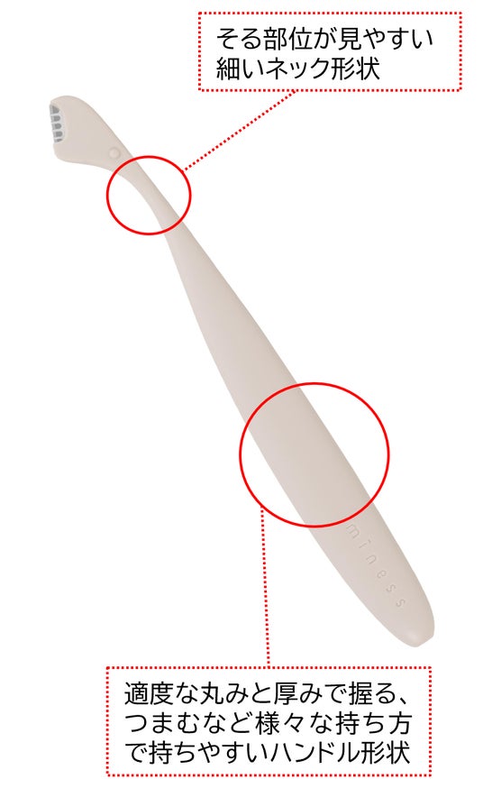 ・minessらしい丸みと指の収まりのよいくぼみで持ちやすいハンドル形状