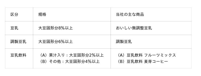 大きく「豆乳」、「調製豆乳」、「豆乳飲料」の3つに分けられます。