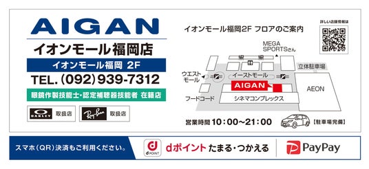 ※「AIGAN イオンモール福岡店」は、眼鏡作製技能士・認定補聴器技能者在籍店です。