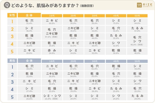 ■【ランキング発表】 10~50代・男女1000名の「肌悩み」と「解決策」