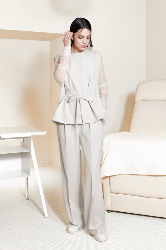 新色は、今年2026年トレンドカラー=クラウドダンサー(PANTONE社より発表)のような明るいグレージュ。白に寄せた明度と、グレー×ベージュの繊細なニュアンスが肌を明るく見せ、ユニフォームを“重く見せない”軽やかさをつくります。