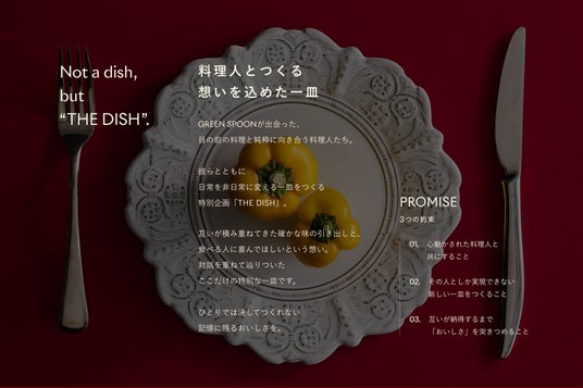 これまでGREEN SPOONとシェフたちが向き合ってきた「おいしさ」。互いが積み重ねてきた確かな味の引き出しを組み合わせ、2026年2月25日(水)より、プレミアムシリーズ「THE DISH」として数量限定メニューを販売開始いたします。