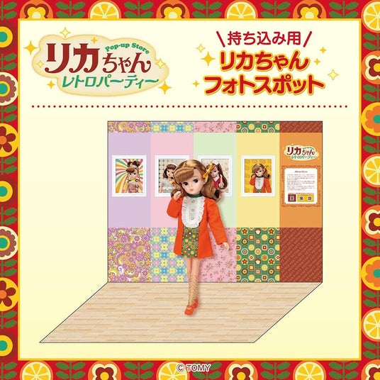 グッズ販売以外にも、大人に人気のキャラクターやブランドとコラボレーションしたリカちゃんの販売や、今回グッズデザインモチーフになったレトロリカのディスプレイ、初代リカちゃんのパッケージに入って撮影できるフォトスポットなど、レトロなリカちゃんの世界観を楽しめる内容です。