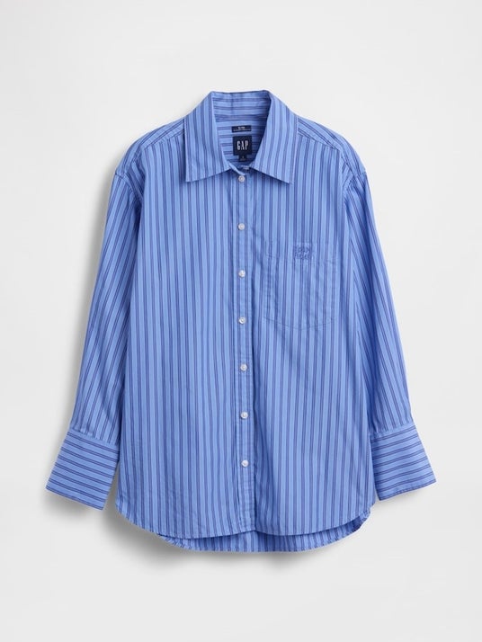 ・ Women’s / オーガニック コットンポプリン ビッグシャツ (9,990円):オーバーサイズ感が魅力のカラフルなストライプシャツ。