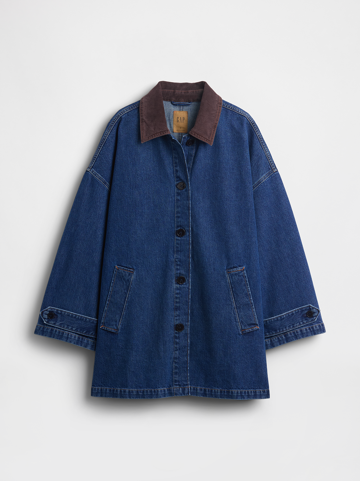 ・ Women’s / オーバーサイズ デニム カーコート (23,900円 ※オンライン限定):襟がコーデュロイ素材になったになったデニムコート。