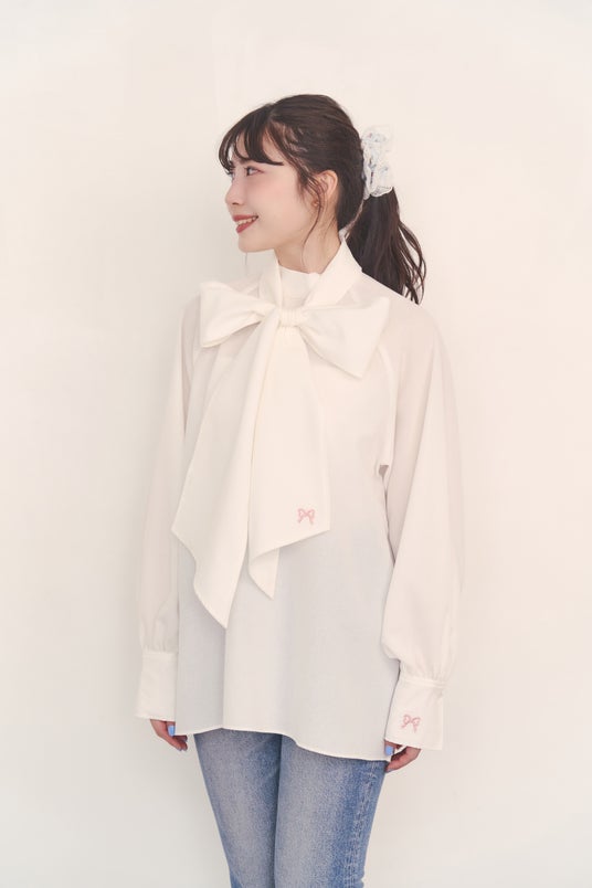 ●クラシカルな気品と、自由なアレンジが楽しめるボウタイブラウスが新登場。シーンに合わせた結び方のアレンジや取り外しができるボウタイは、リボン結びでフェミニンに、ネクタイ風に結んでマニッシュに、あるいは外してシンプルなスタンドカラーのシャツとして。ボウタイの先と袖口にリボン刺繍をあしらい、細部までキャス キッドソンらしい愛らしさを詰め込みました。チェックの織り柄入りの生地は表情豊かな奥行きが魅力。フレアスカートと柄を合わせて、セットアップ風の着こなしを楽しむのも今季らしいスタイルです。