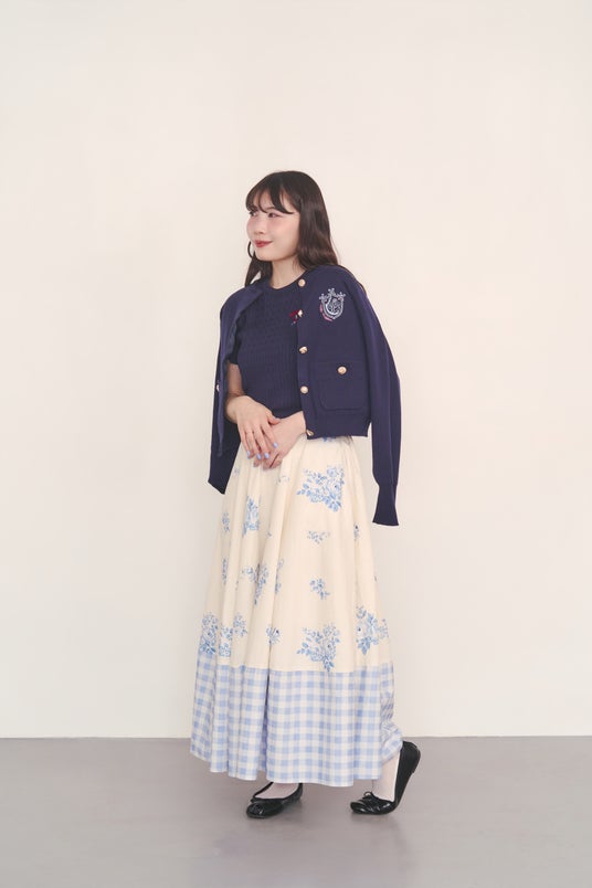◇刺繍ニットカーディガンジャケット Love Notes Ivory / Navy / Red / Gray / Sax 各13,200円(税込)