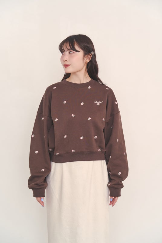 ◇総柄刺繍スウェットトップス Rose Embroidery Ivory / Brown / Gray 各11,000円(税込)