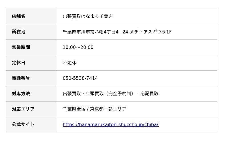 ■ 出張買取はなまる千葉店の詳細