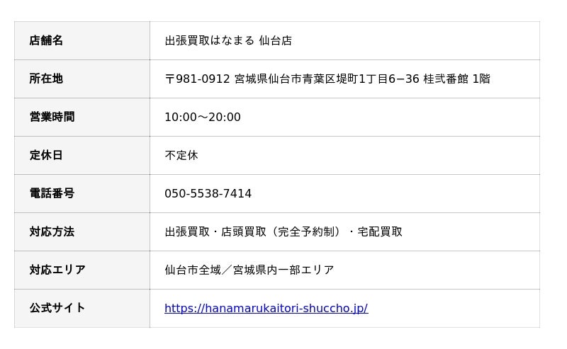 出張買取はなまるの店舗情報