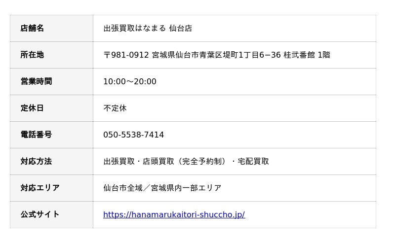 出張買取はなまる仙台店の詳細を見る
