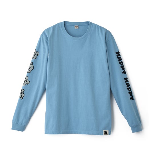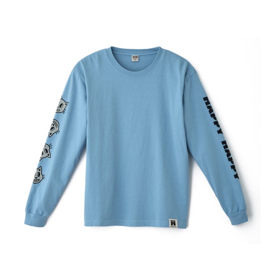 Long-sleeve T-shirtは、右袖にはDogやCatの愛くるしい表情を並べ、左袖には「HAPPY HAPPY」のタイポグラフィを大胆にプリント。DogとCatの2デザインで、それぞれWhite、Sumikuro、Blueの3色を展開します。裾部分にはHロゴのワンポイントタグを配し、細部までこだわりを詰め込みました。