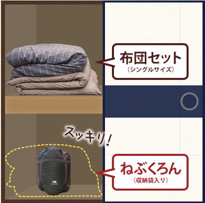 布団のようにかさばらない。“くるくる収納できる”寝袋発想の来客布団「お泊まり準備ばっちりセット」
