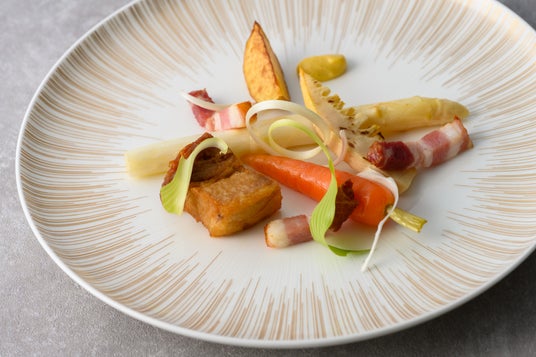 もちもちとした肉質、口の中に広がる甘みが特徴の能登豚を主役に、旬の食材がシェフの感性と響き合う、一期一会のアシェットです。