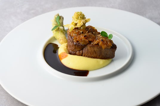 素材の真価がダイレクトに伝わるシンプルさの中に、凛とした奥深さが宿ります。深いコクを湛えた赤ワインソースは、加賀能登の旬菜とともに、石川の豊かな実りへの敬意を捧げる至高の一皿です。