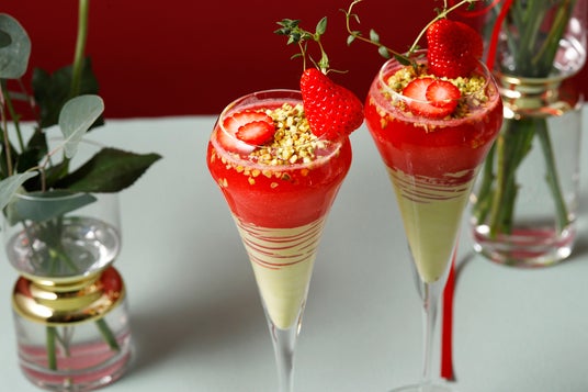 スペシャルドリンク構成:ピスタチオホイップ、いちご、ストロベリーシロップ、ローズシロップ、クランベリージュース、ピスタチオ、タイム