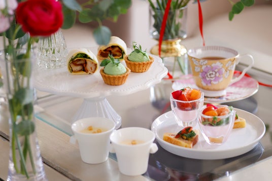 セイボリーは、いちごをアクセントにしたタンドリーチキンのトルティーヤロールや、ビーツの鮮やかな色合いが目を惹くブランマンジェ、グリーンピースのエスプーマを添えたキッシュなど、フレンチの技法を活かした繊細なメニューを隣接するホテルのメインダイニング「ラ・プロヴァンス」よりご用意。さらに、イタリアンダイニング ジリオンとファインダイニング ラ・プロヴァンスでは、アフタヌーンティースタイルのデザートが付いたランチ&ディナーコースをご用意し、シーンやお好みに合わせてお選びいただけます。