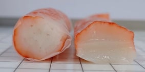 すり身製造工程に独自の加工技術を組み込み、品質の安定と従来よりもしなやかでほぐれやすい繊維感を実現。さらに、ピロー包装を採用することで、製品が押しつぶされることがなく、ひと口目から肉厚でふっくらした食感をお楽しみいただけます。