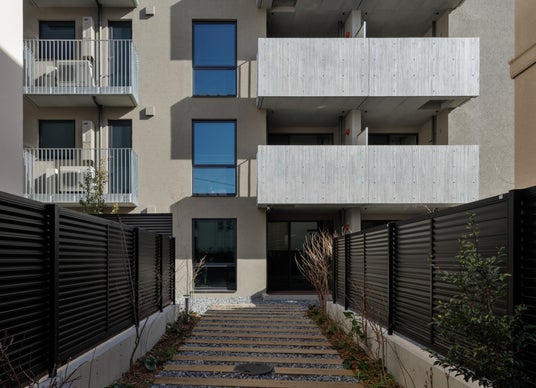 それぞれの住戸が自然と接続されるようにデザインされ、光、風、緑を受け入れる。
