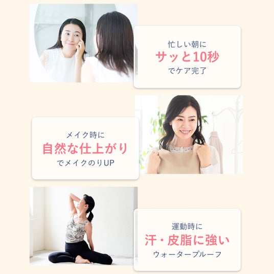 さらに、しっかりキープのウォータープルーフ処方でホットヨガなどのスポーツ時にも安心です。