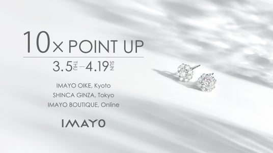 3月5日(木)~4月19日(日)の期間限定で、IMAYO国内直営店または公式オンラインショップでご購入いただいたお客様に10%のポイント還元キャンペーンを実施