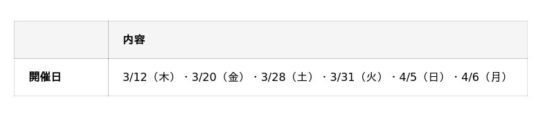 2026年3月~4月|全6日間開催