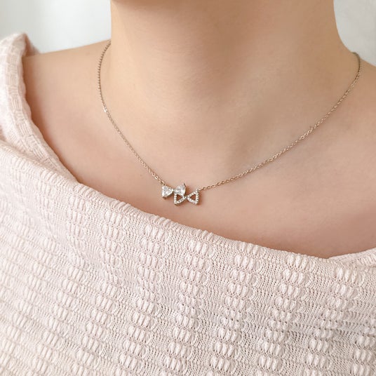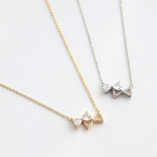 商品名:ダブルリボンネックレス / キュービックジルコニア