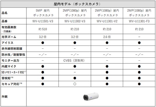 ※8:音検知機能の搭載/非搭載にかかわらず、動体検知(VMD)、妨害検知(SCD)は全機種搭載。