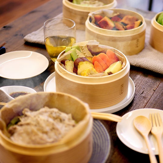 蒸し料理は秋冬の印象が強いかもしれませんが、「蒸とら」は一年を通して活躍します。野菜をシンプルに蒸すだけでも、ゆで調理とは異なる仕上がりとなり、素材本来の持ち味を引き出しやすいのが特長です。点心や蒸しパン、温野菜、蒸し鶏など、日々の食卓に取り入れやすいメニューが広がります。