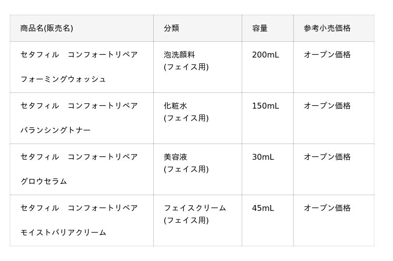 「セタフィル コンフォートリペア」は、こうした不安定肌のもたらす悩みに包括的にアプローチ。既存のフェイス&ボディシリーズで培った知見を生かし、肌のゆらぎに着目した毎日のシンプルなケアを通して、ゆらぎに負けないすこやかな肌状態を保つことを目的としています。