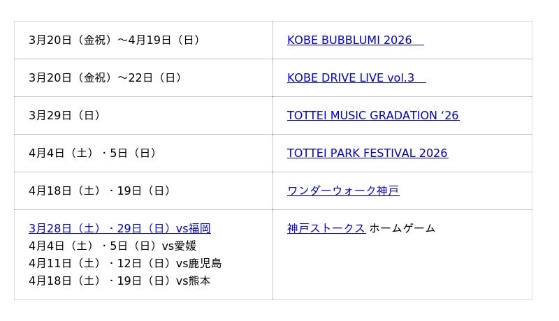開業1周年記念『TOTTEI KOBE 開港祭』& バブル×イルミイベント『KOBE BUBBLUMI 2026』開催記念